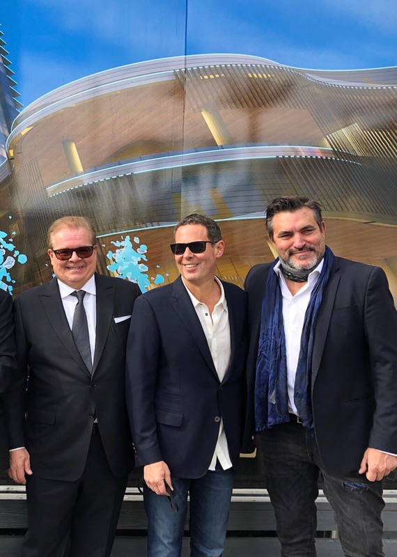 From left: Architect Paul Steelman, Lorenzo Doumani, and celebrity chef and restaurateur Todd English at a launch event on January 6, 2020.