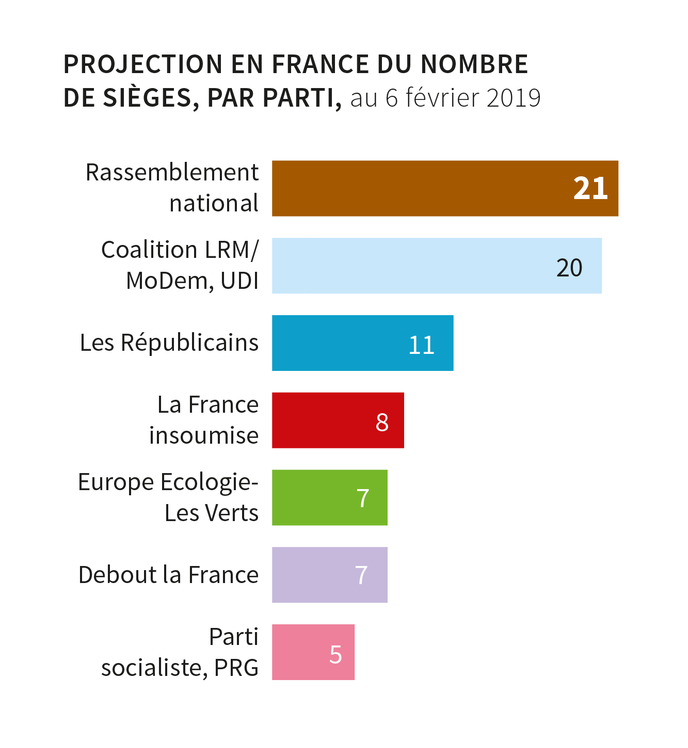 Bien qu’elle fasse beaucoup parler d’elle, la perspective d’une majorité d’extrême droite eurosceptique semble toutefois assez improbable. Une étude du Conseil européen pour les relations étrangères (ECFR), un think tank libéral, publiée le 11 février, attribue ainsi 132 sièges à un ensemble allant des néonazis grecs d’Aube dorée au M5S italien, en passant par le Rassemblement national de Marine Le Pen et Debout la France de Nicolas Dupont-Aignan. Autant de partis qui ont été incapables de faire bloc durant cette mandature (2014-2019).